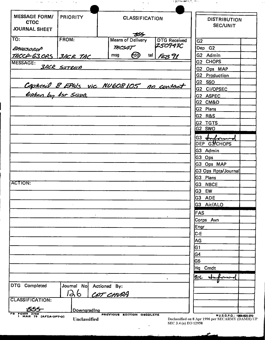 Document 132 f:/Week-12/BX000024/DUTY LOG G3 TAC CP 24 FEB 91/daily staff journal or duty officers log:041796160120117