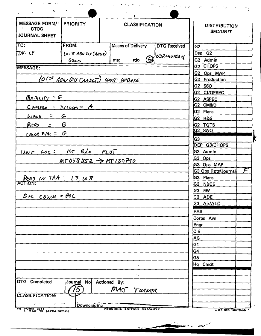 Document 38 f:/Week-12/BX000024/DUTY LOG G3 TAC CP 3 FEB 91/daily staff journal or duty officers lgo:041796160120130