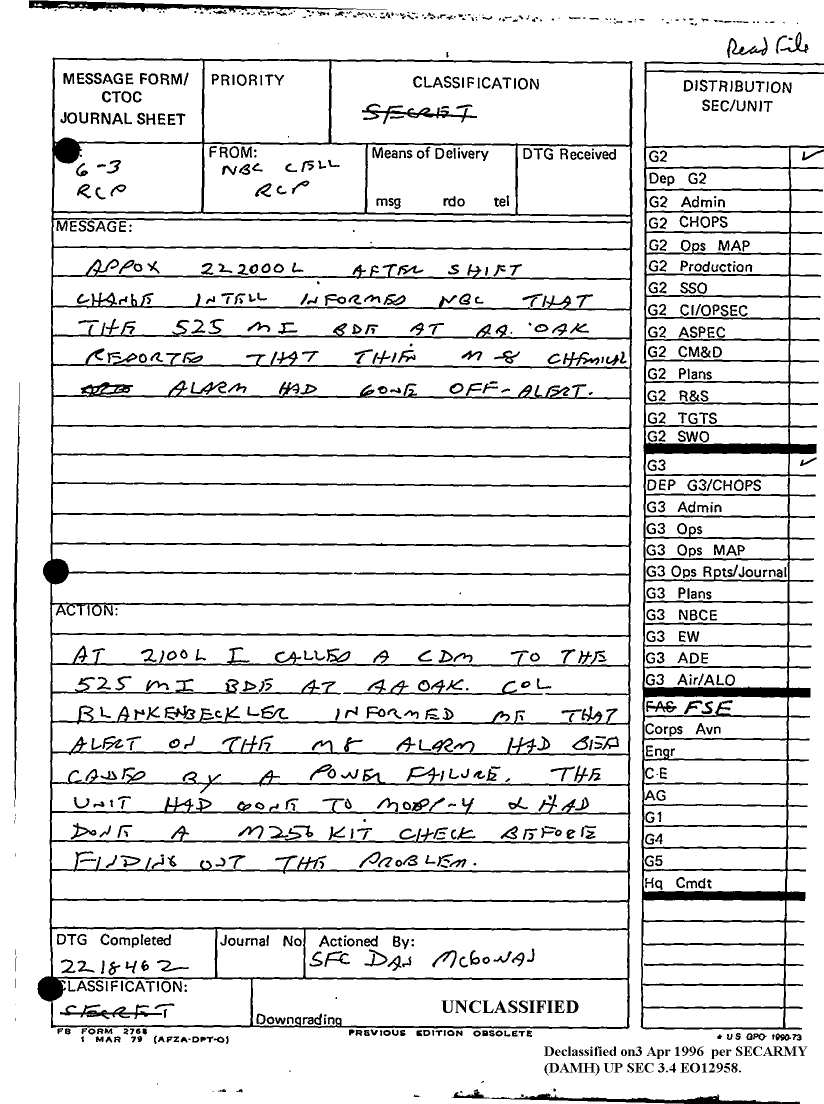 Document 1 f:/Week-09/BX000019/DUTY LOG G3 REAR 23 JAN 91/message form m-8 alarmed due to power failure:04179616012012