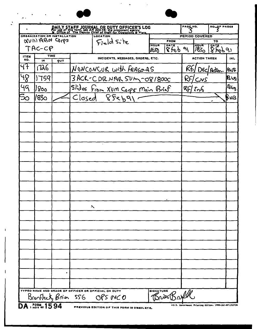 Document 25 f:/Week-12/BX000024/DUTY LOG G3 TAC CP 7 FEB 91/daily staff journal or duty officers log:04179616012036