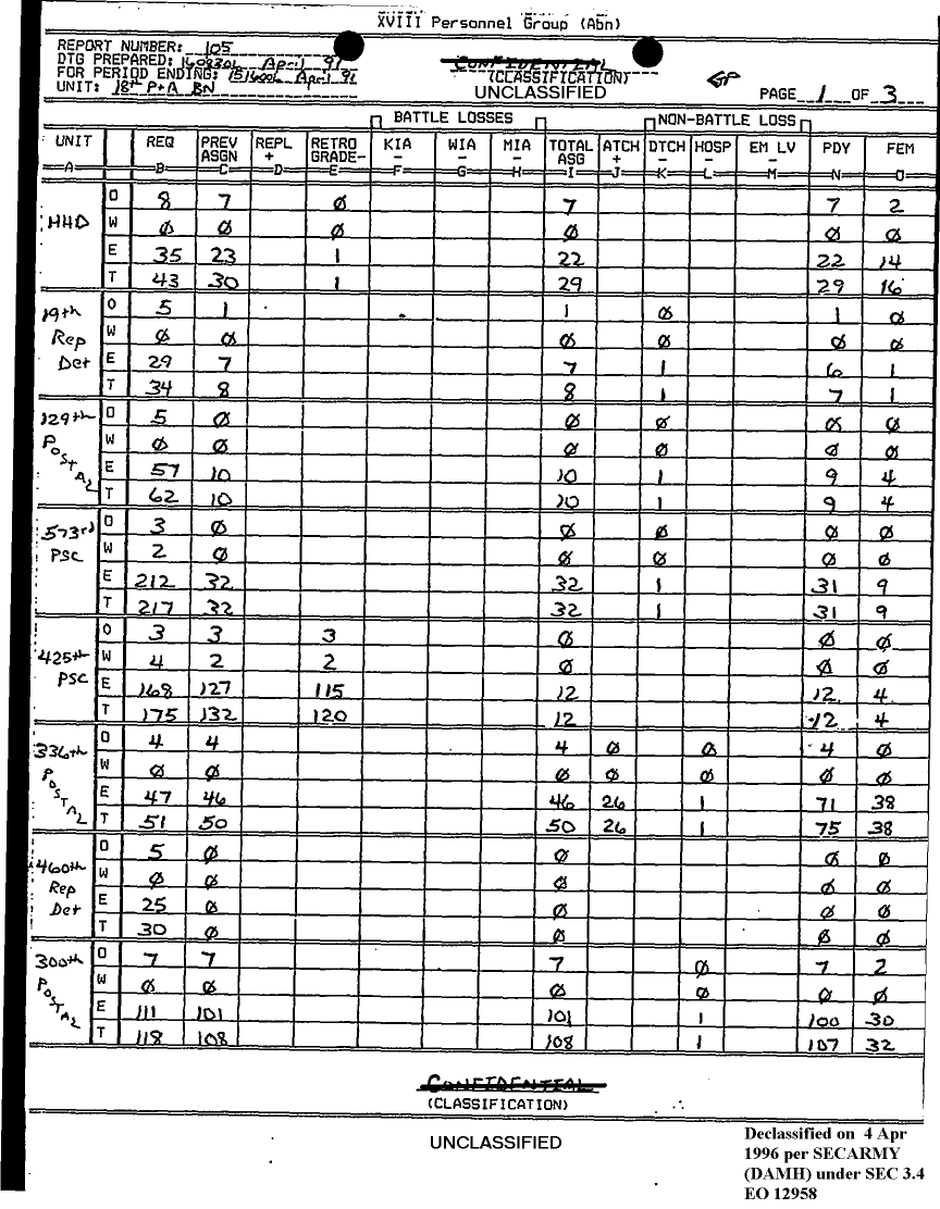 Folder Title = PERSONNEL STATUS REPORTS 13-21 APRIL 91