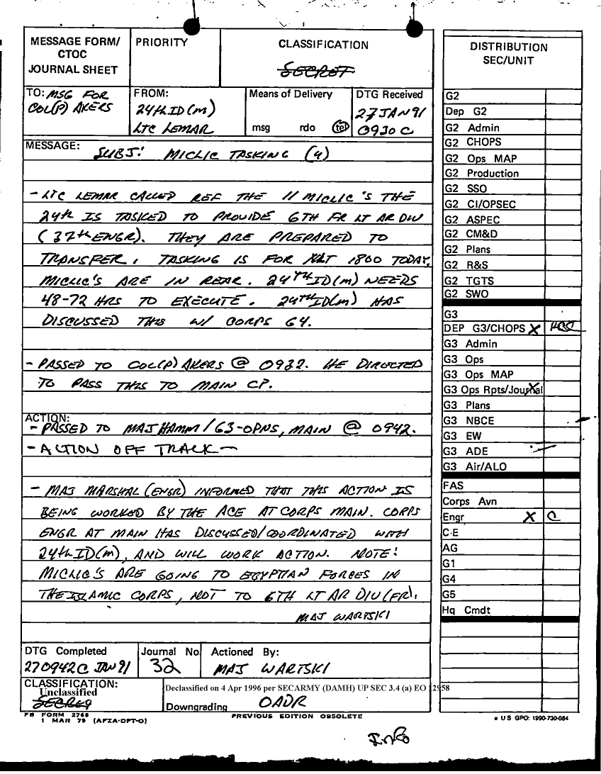 Document 55 f:/Week-12/BX000024/DUTY LOG G3 TAC CP 26 JAN 91/daily staff journal or duty officers log:04179616012061