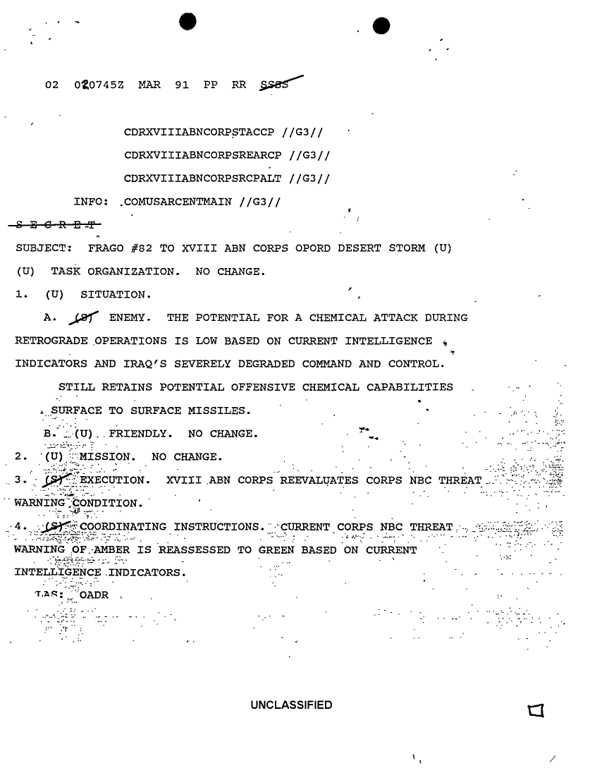 Subject = FRAGO 82 TO XVIII ABN CORPS OPORD DESERT STORM