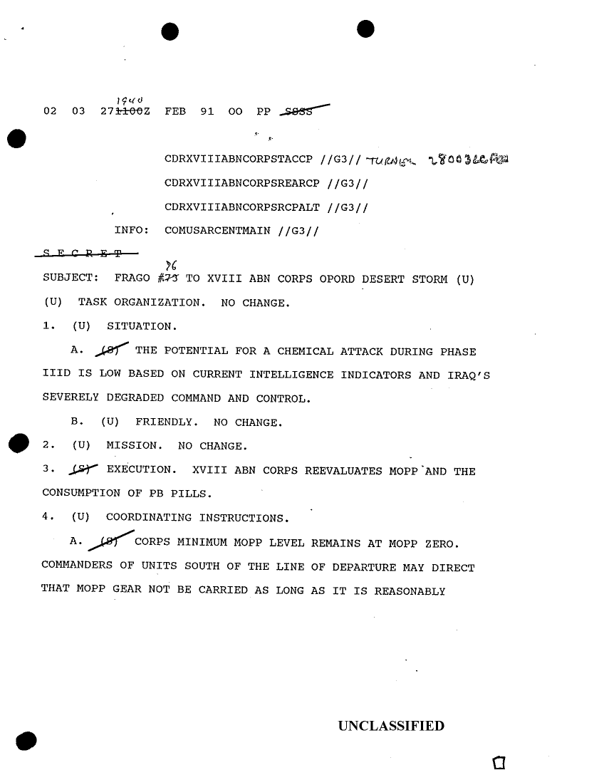 Document 3 f:/Week-14/BX000012/G3 SPECIAL SUBJECT FILES CORPS STORM FRAGOS 1-124/frago 76 to xviii abn corps opord desert storm:0523960916135