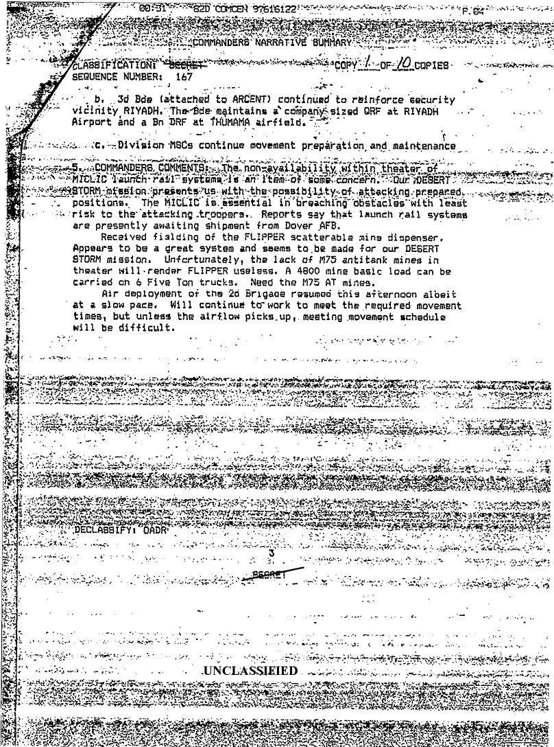 Document 44 f:/Week-08/BX000015/DUTY LOG 82 AB DIV SITREPS G3 JAN 91/commanders narrative summary:05309618571721