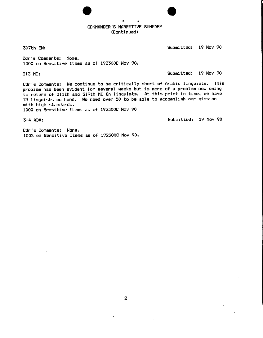 Subject = COMMANDERS NARRATIVE SUMMARIES NOV 90