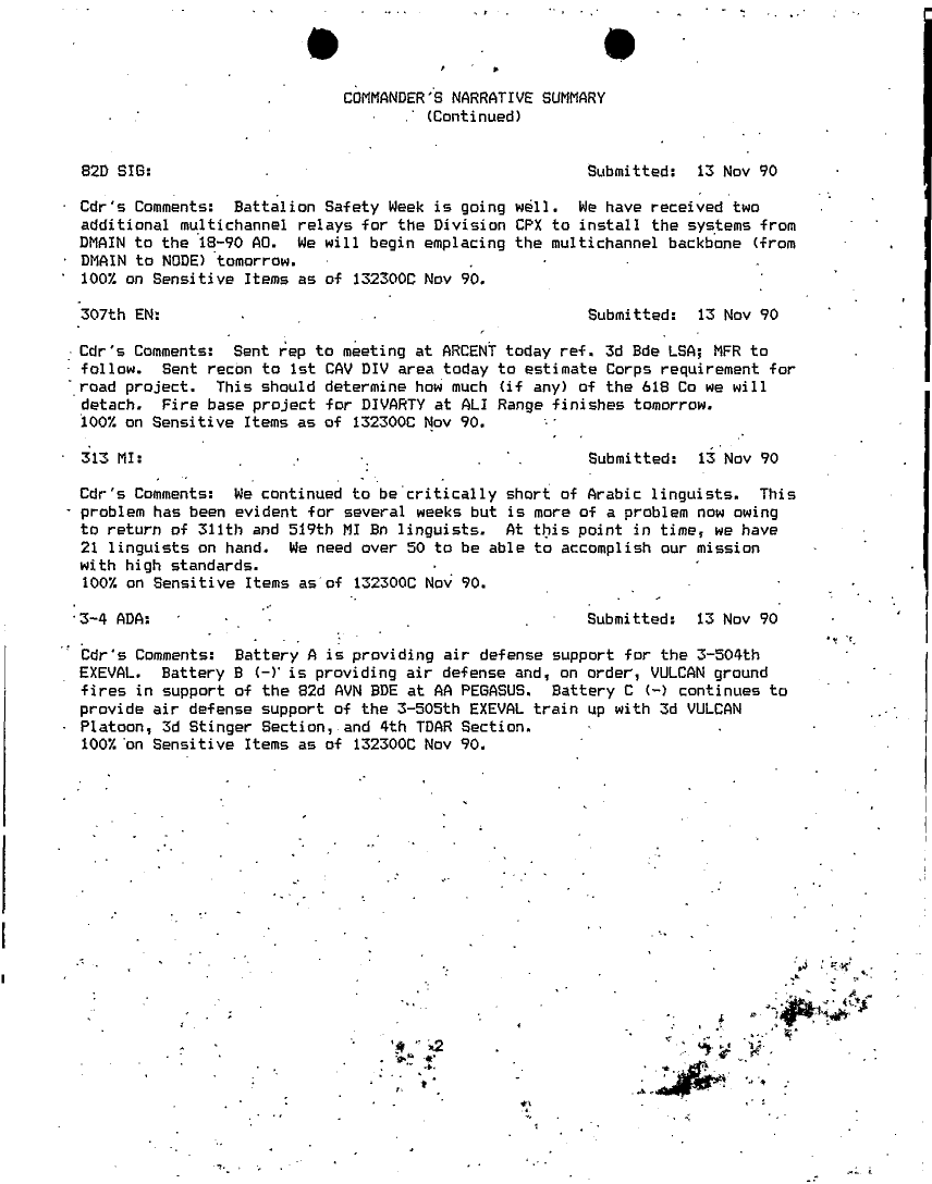 Document 75 f:/Week-18/BX000014/COMMAND REPORTS NOV 92 - 8/commanders narrative summaries nov 90:06079615285229