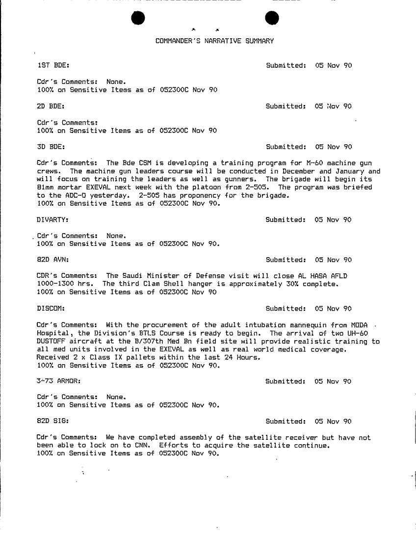 Subject = COMMANDERS NARRATIVE SUMMARIES NOV 90