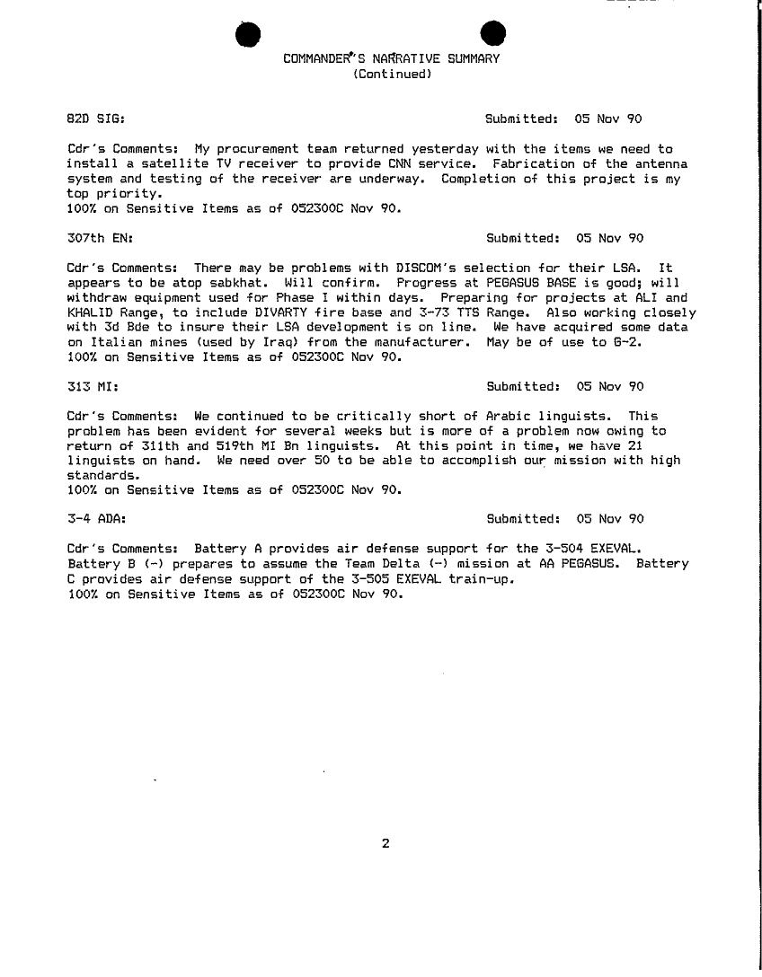 Document 75 f:/Week-18/BX000014/COMMAND REPORTS NOV 92 - 8/commanders narrative summaries nov 90:06079615285229