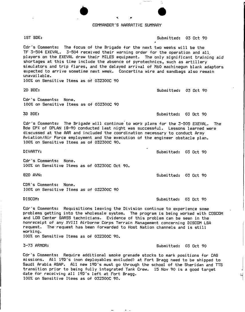 Document 75 f:/Week-18/BX000014/COMMAND REPORTS NOV 92 - 8/commanders narrative summaries nov 90:06079615285229