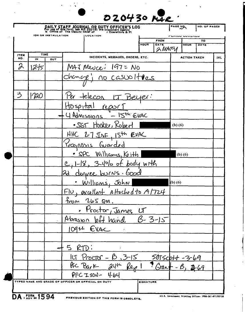 Document 135 f:/Week-22/BX001433/MESSAGE-TELEPHONE TRAFFIC/daily staff journal or duty officers log:06219615521613