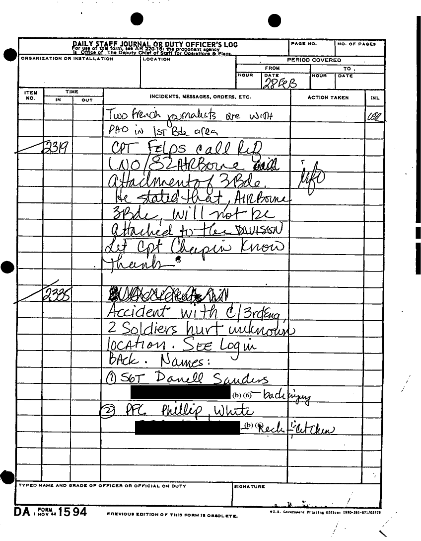 Document 135 f:/Week-22/BX001433/MESSAGE-TELEPHONE TRAFFIC/daily staff journal or duty officers log:06219615521613