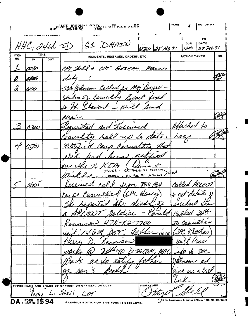 Document 135 f:/Week-22/BX001433/MESSAGE-TELEPHONE TRAFFIC/daily staff journal or duty officers log:06219615521613
