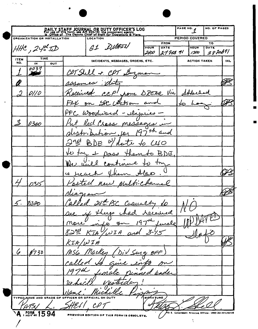 Document 135 f:/Week-22/BX001433/MESSAGE-TELEPHONE TRAFFIC/daily staff journal or duty officers log:06219615521613