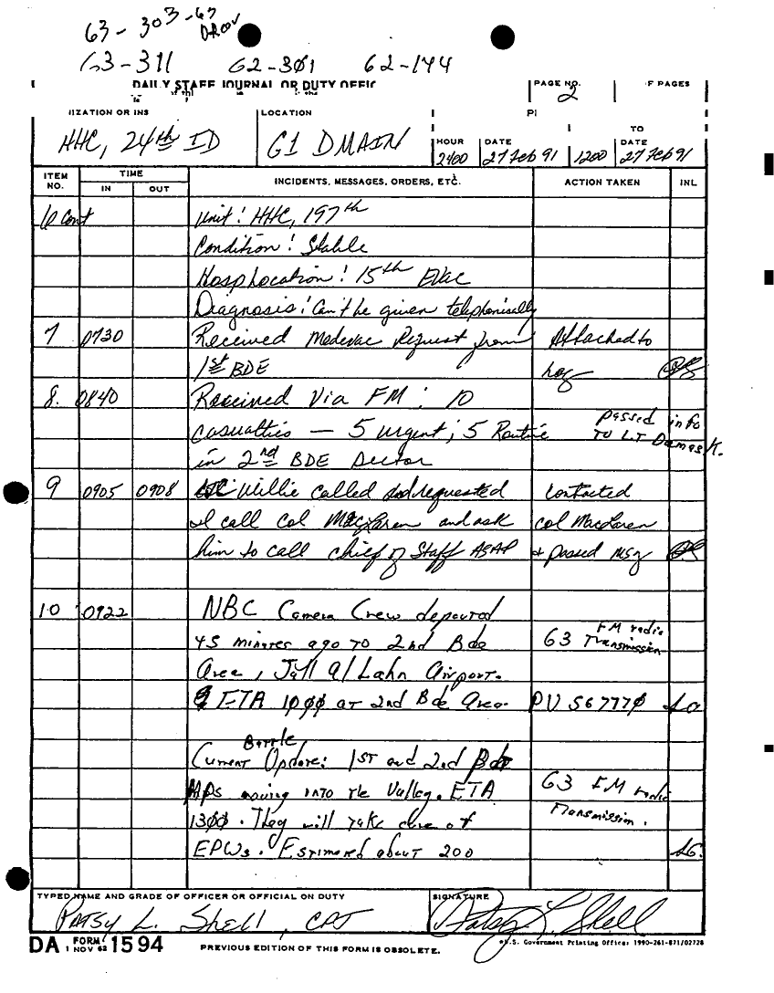 Document 135 f:/Week-22/BX001433/MESSAGE-TELEPHONE TRAFFIC/daily staff journal or duty officers log:06219615521613