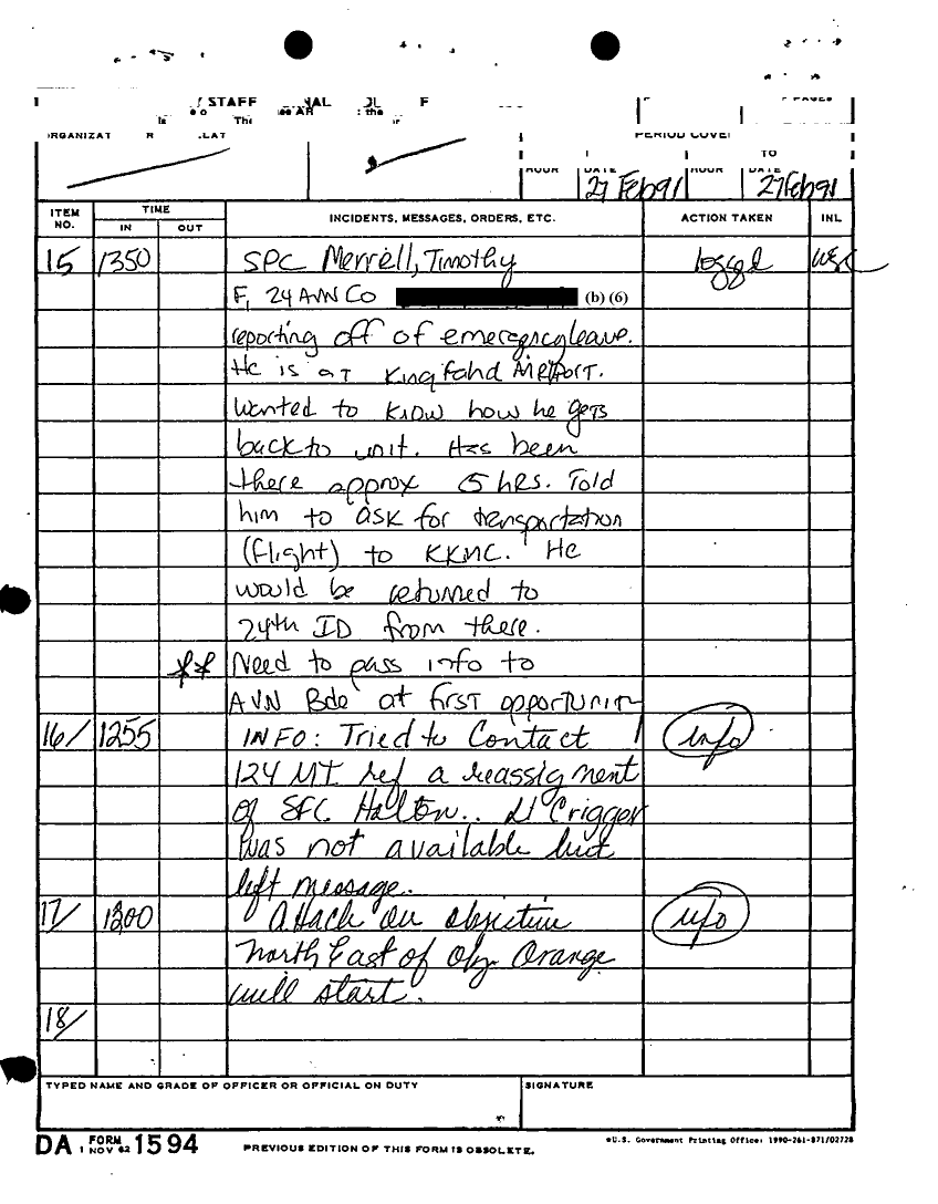 Document 135 f:/Week-22/BX001433/MESSAGE-TELEPHONE TRAFFIC/daily staff journal or duty officers log:06219615521613