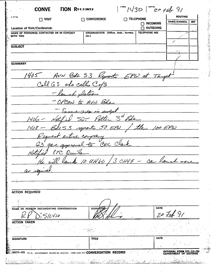 Document 59 f:/Week-22/BX001602/DUTY LOGS G3 MAIN 19-22 FEB 91/daily staff journal 20 feb 91:07059613421614