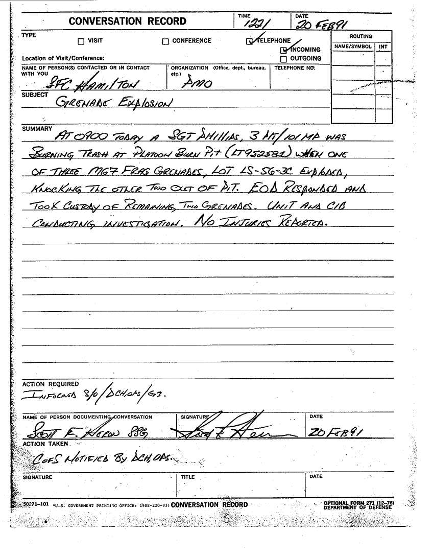 Document 59 f:/Week-22/BX001602/DUTY LOGS G3 MAIN 19-22 FEB 91/daily staff journal 20 feb 91:07059613421614