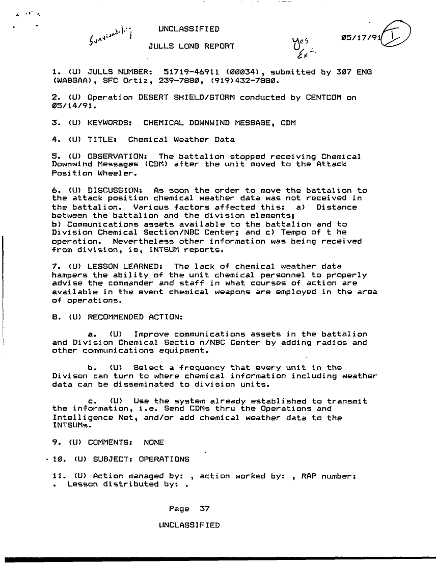 Document 38 f:/Week-22/BX001511/JULLS LONG REPORT 17 MAY 91 - 1/memorandum julls long report 17 may 91:07199610184621