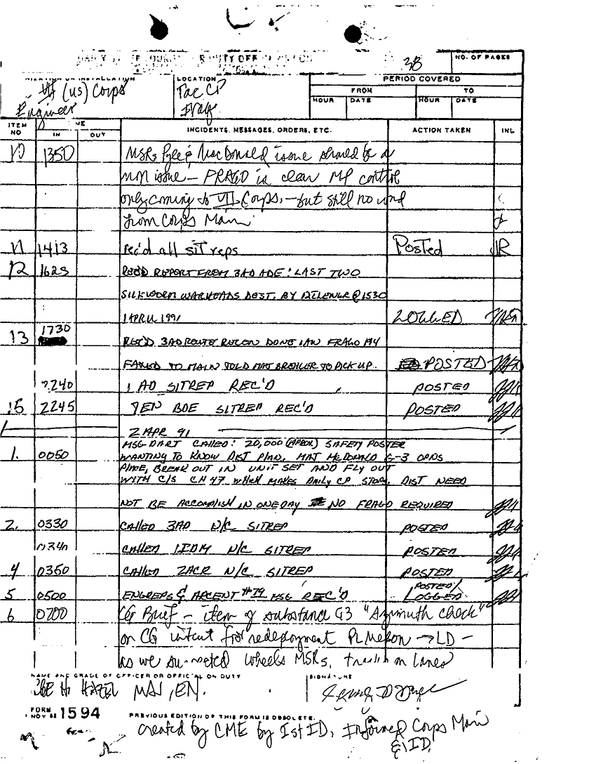 Document 59 f:/Week-25/BX000252/DAILY STAFF JOURNAL 16 MAR TO 13 APRIL 1991 SITREPS/daily staff journal:07199610194645