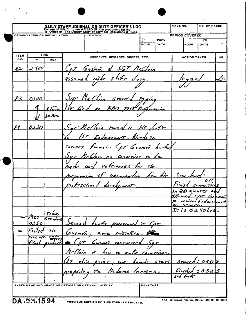 Document 180 f:/Week-22/BX001433/MESSAGE TRAFFIC LOGS-COMPLETED ACTIONS/daily staff journal duty log:07199610203890