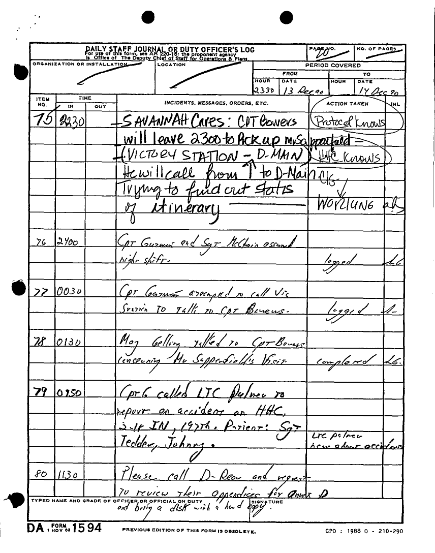 Document 180 f:/Week-22/BX001433/MESSAGE TRAFFIC LOGS-COMPLETED ACTIONS/daily staff journal duty log:07199610203890