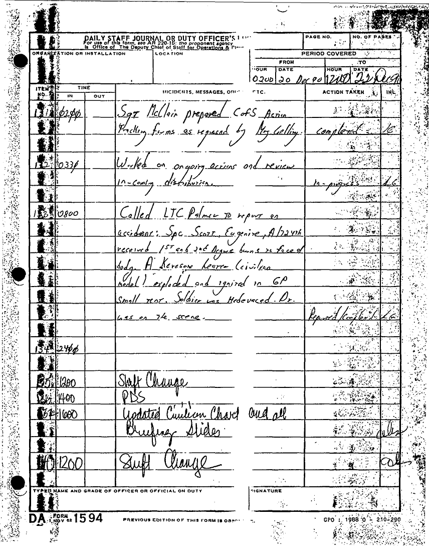 Document 180 f:/Week-22/BX001433/MESSAGE TRAFFIC LOGS-COMPLETED ACTIONS/daily staff journal duty log:07199610203890