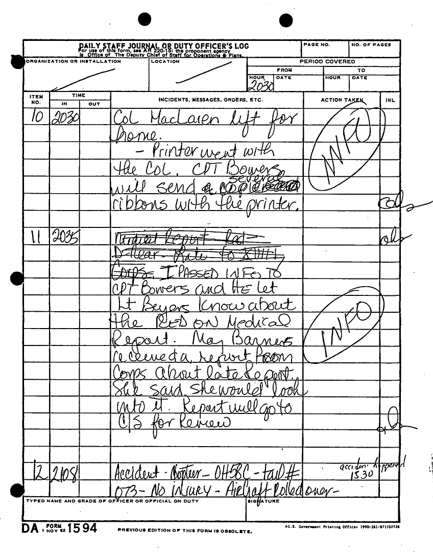 Document 180 f:/Week-22/BX001433/MESSAGE TRAFFIC LOGS-COMPLETED ACTIONS/daily staff journal duty log:07199610203890