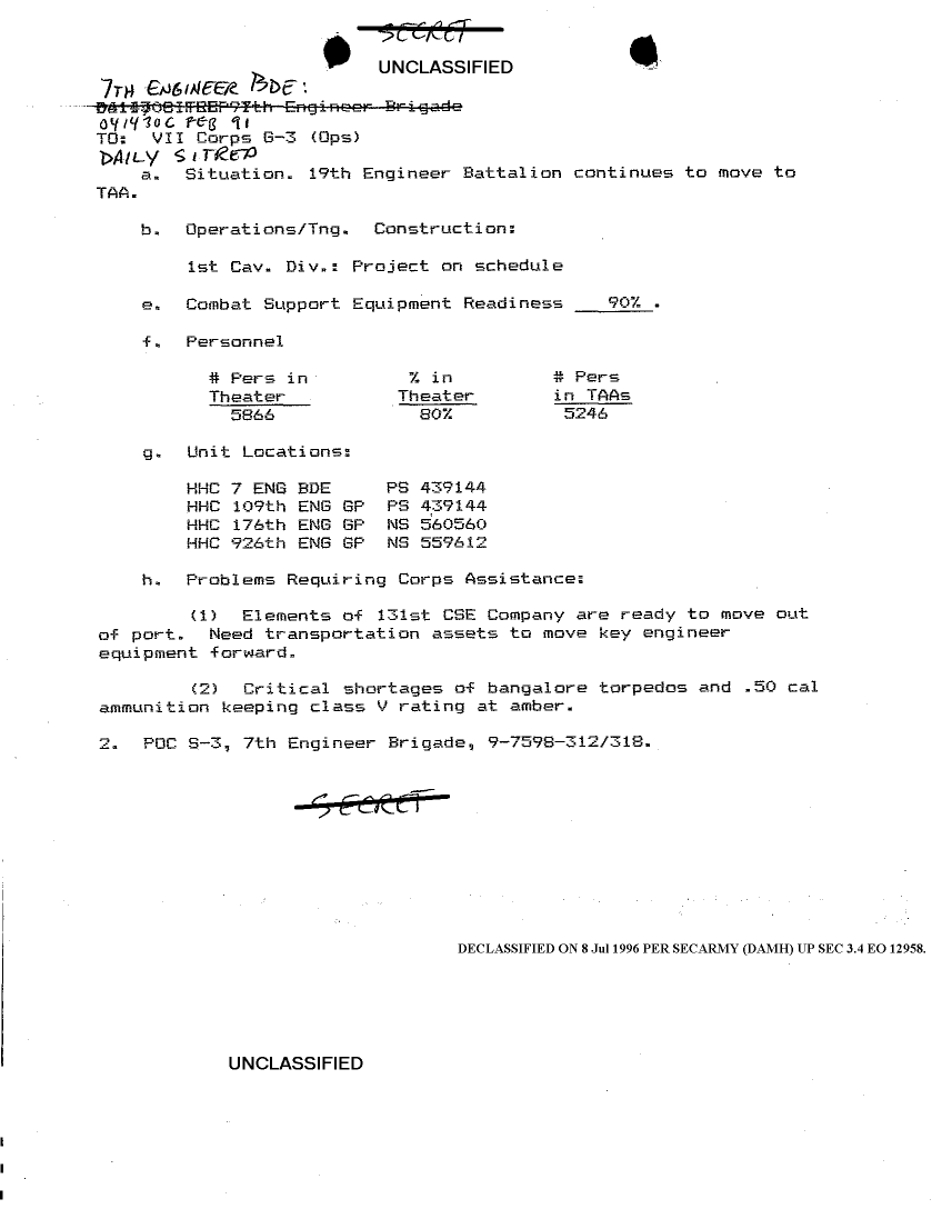 Folder Title = SITUATION REPORTS 7TH ENG BDE 22 DEC 90- 10 APR 91