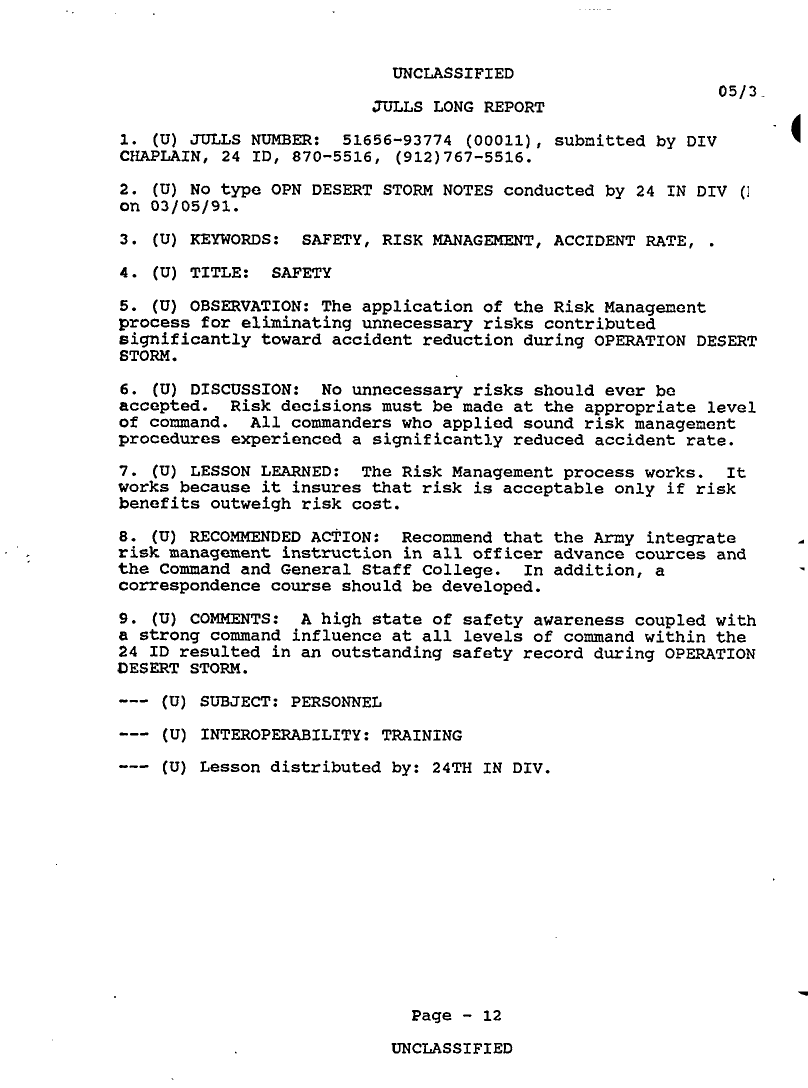Subject = 24TH MECH INF DIV OPERATION DESERT STORM AFTER A