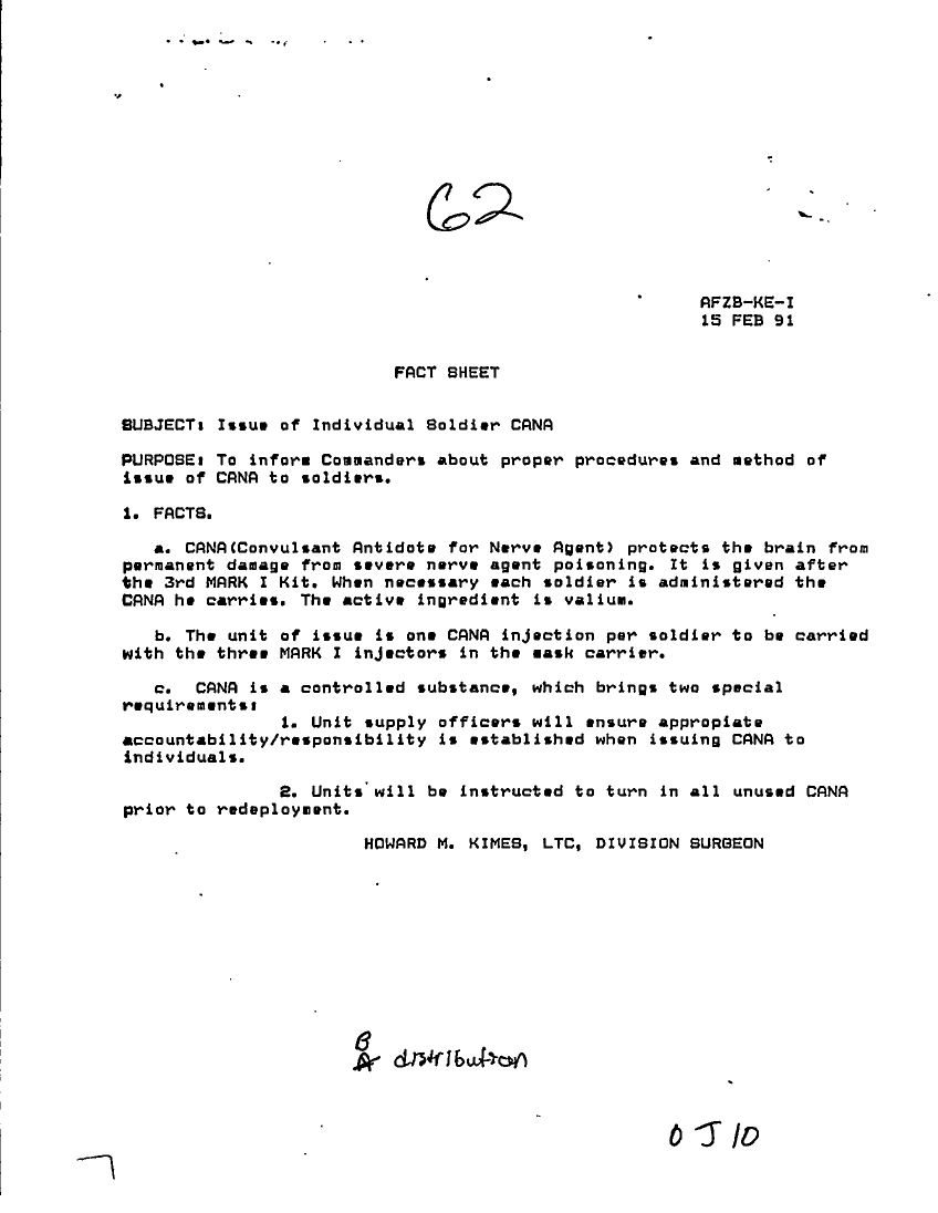 Subject = ISSUE OF INDIVIDUAL SOLDIER CANA 15 FEB 91