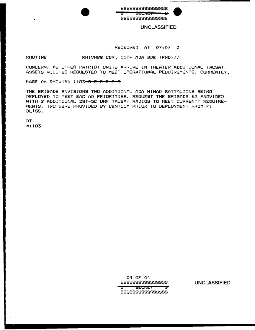 Document 11 f:/Week-29/BX000429/TACTICAL OPERATIONS CENTER LOGS - MSG FILE LOGS 23 NOV 90/11th ada bde situation report 87:08169613342730