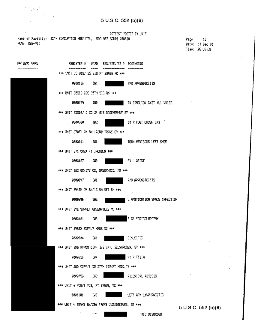Document 34 f:/Week-32/BX000482/MEDSTAT - SITREPS DEC 90 2 OF 6/patient alpha roster 17 dec 90:0913961611561
