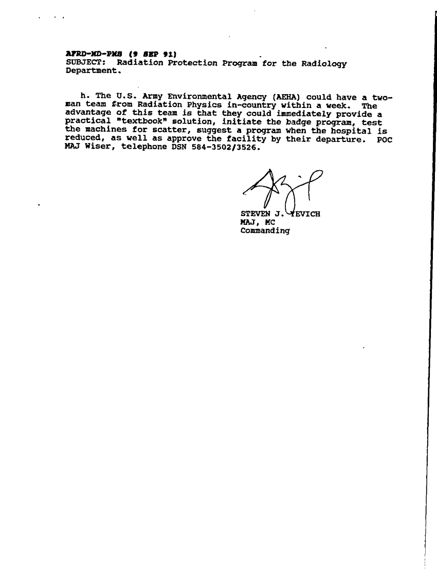 Subject = RADIATION PROTECTION PROGRAM FOR THE RADIOLOGY D