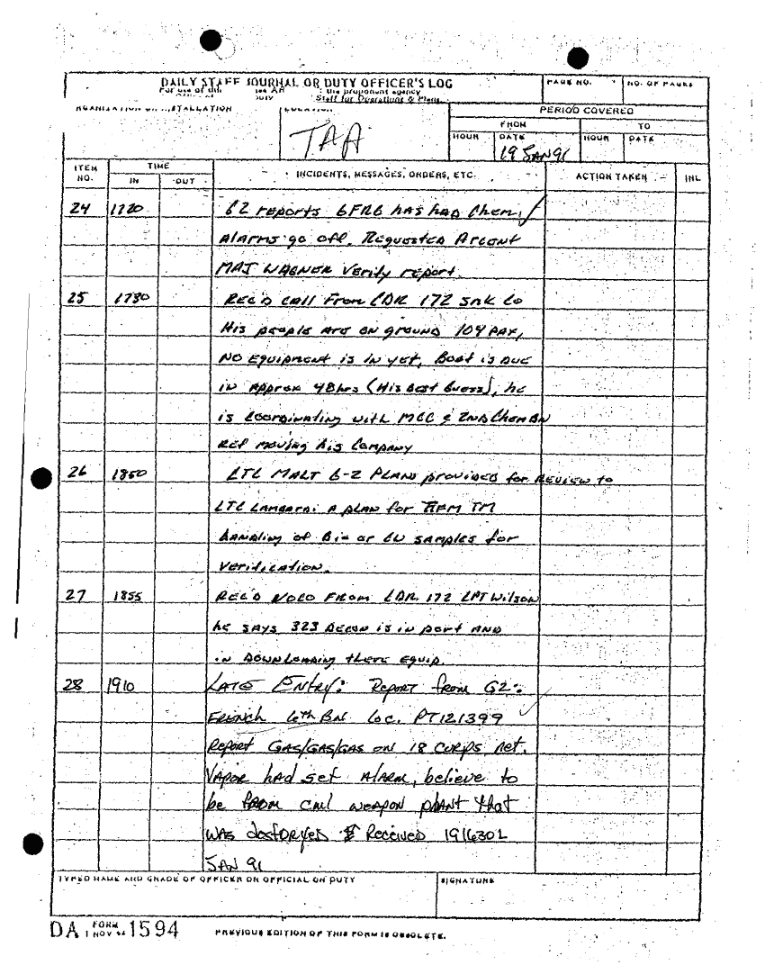 Folder Title = DAILY STAFF JOURNALS 19-27 JAN 91