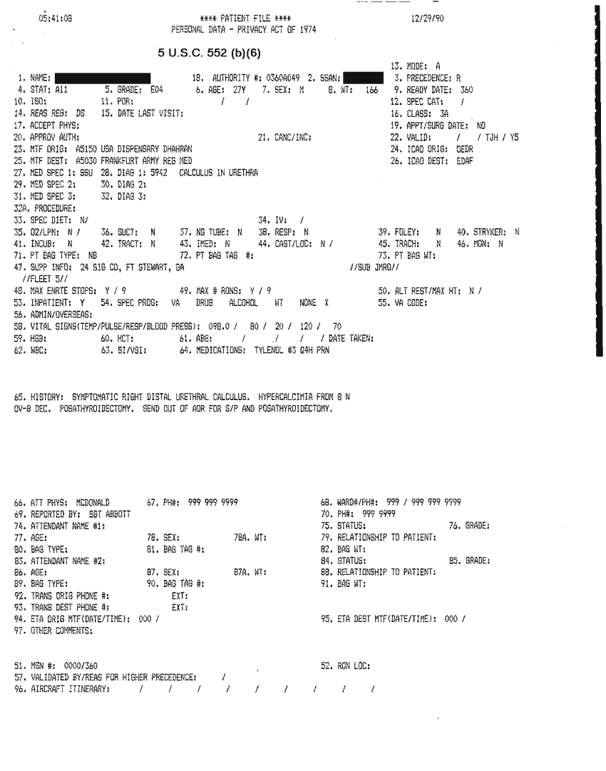 Document 30 f:/Week-32/BX000482/MEDSTAT - SITREPS DEC 90 4 OF 6/patient file:09069614064231