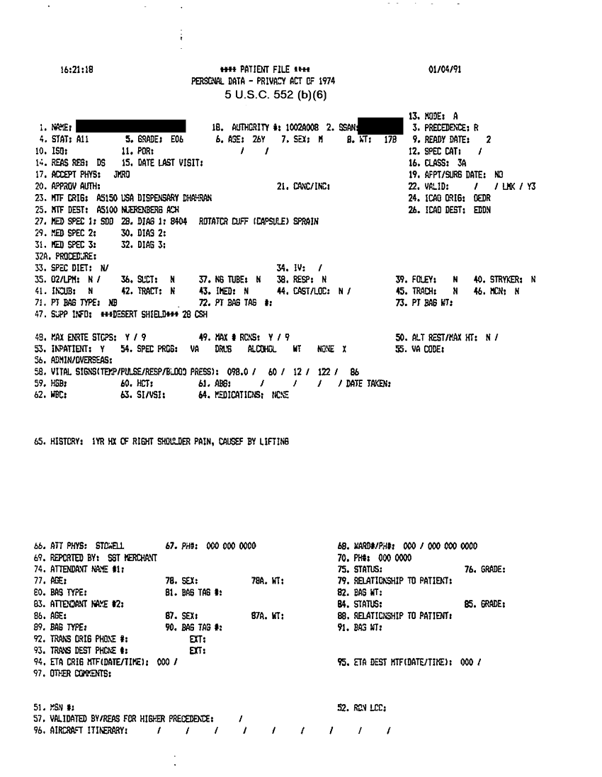 Document 31 f:/Week-31/BX000460/MEDSTAT- SITREPS - JANUARY - 1/personal data privacy act of 1974 4 jan 91:09209615580712