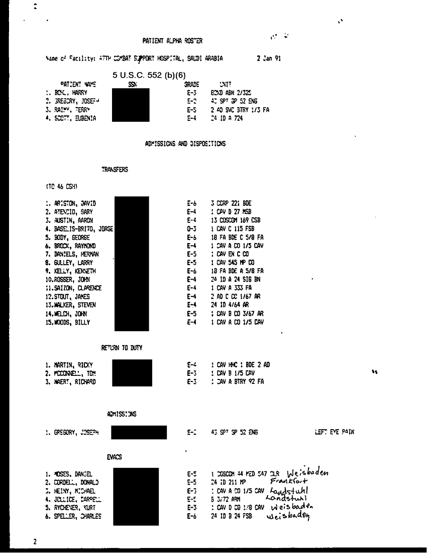 Document 46 f:/Week-31/BX000460/MEDSTAT- SITREPS - JANUARY - 1/patient alpha roster 2 jan 91:10119615403519