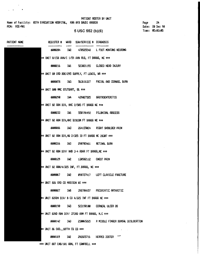 Document 30 f:/Week-32/BX000482/MEDSTAT - SITREPS DEC 90 2 OF 6/patient roster by unit 85th evac hospital 20 d:10119615412450