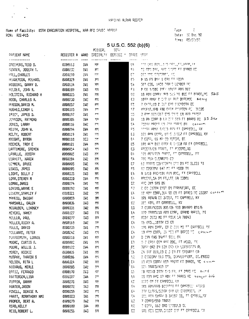 Document 32 f:/Week-32/BX000482/MEDSTAT - SITREPS DEC 90 2 OF 6/patient alpha roster 18 dec 90:10119615413664