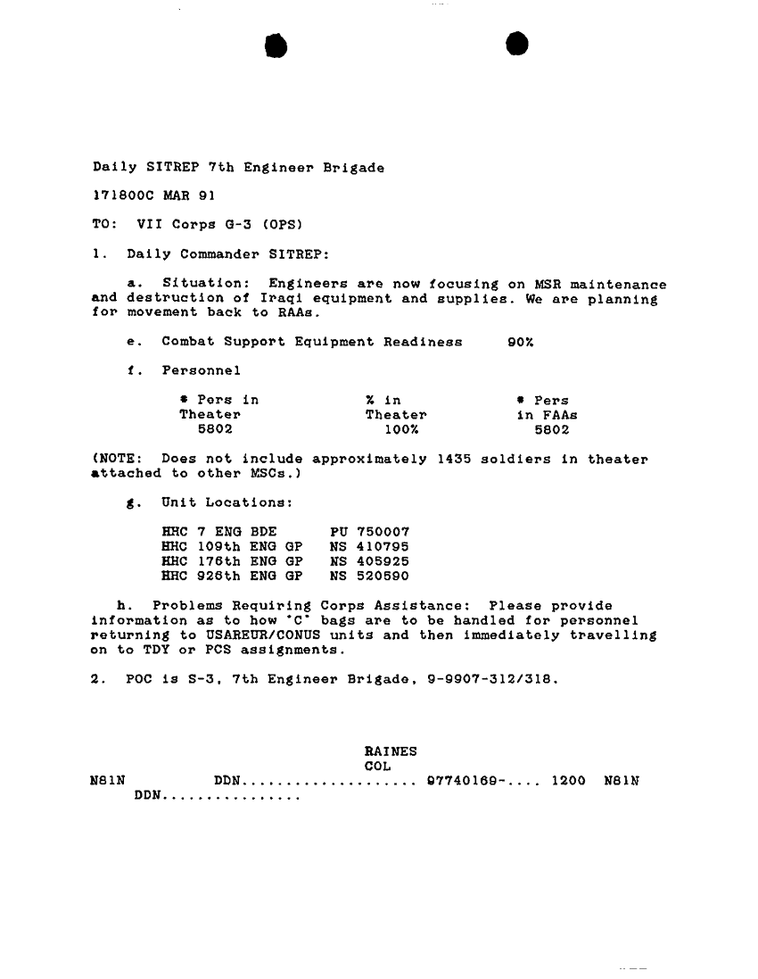 Document 1 f:/Week-24/BX000211/TASK FORCE DEMO LOG 14 MAR- 1 APR 91/daily sitrep:10119615420383