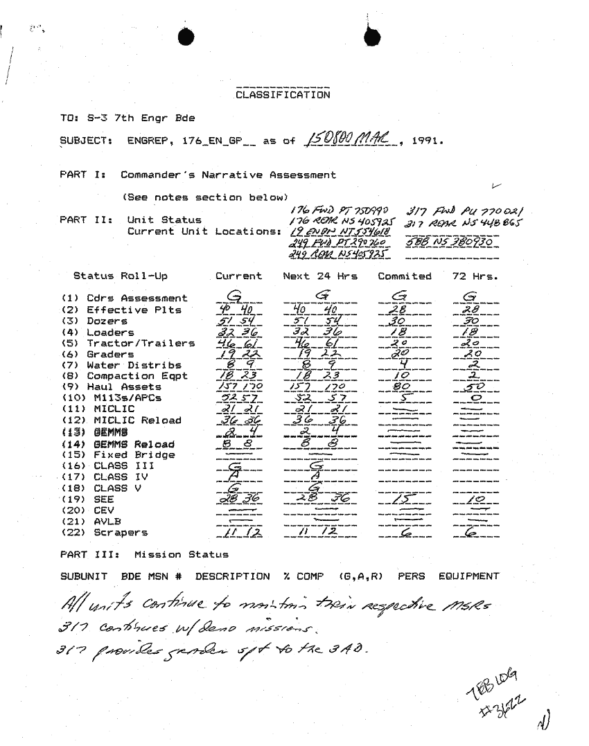 Folder Title = SITUATION REPORTS 176TH ENG GP 21 FEB- 18 MAR 91