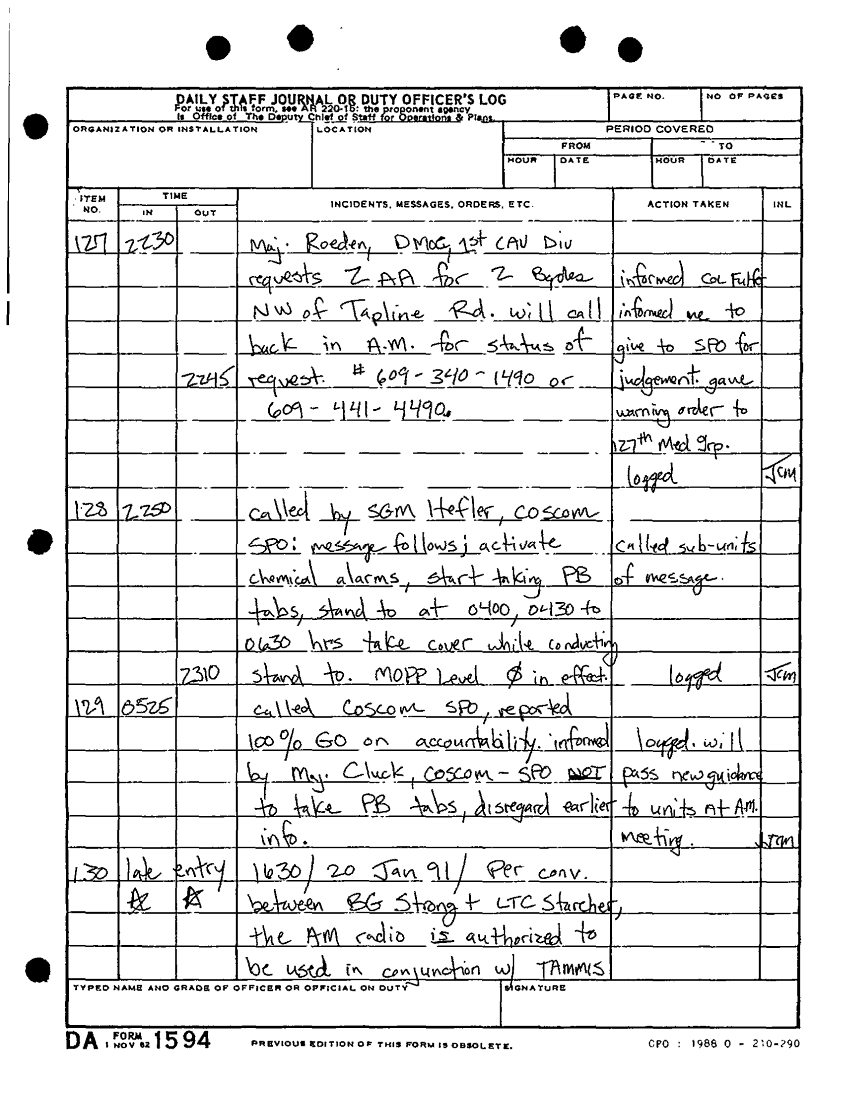 Document 34 f:/Week-34/BX005159/DA FORM 1594-DAILY STAFF JOURNAL OR DUTY OFFICERS LOG -23 DEC 90-26 JAN 91/daily staff journal or duty officers log 21 jan :10019616505868