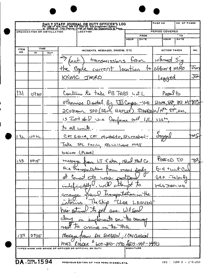 Document 34 f:/Week-34/BX005159/DA FORM 1594-DAILY STAFF JOURNAL OR DUTY OFFICERS LOG -23 DEC 90-26 JAN 91/daily staff journal or duty officers log 21 jan :10019616505868