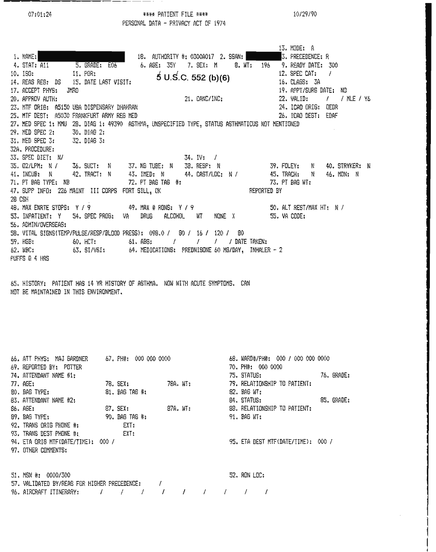 Document 46 f:/Week-32/BX000482/MEDSTAT - SITREPS OCT 90 3 OF 4/patient file 29 oct 90:10019616503417