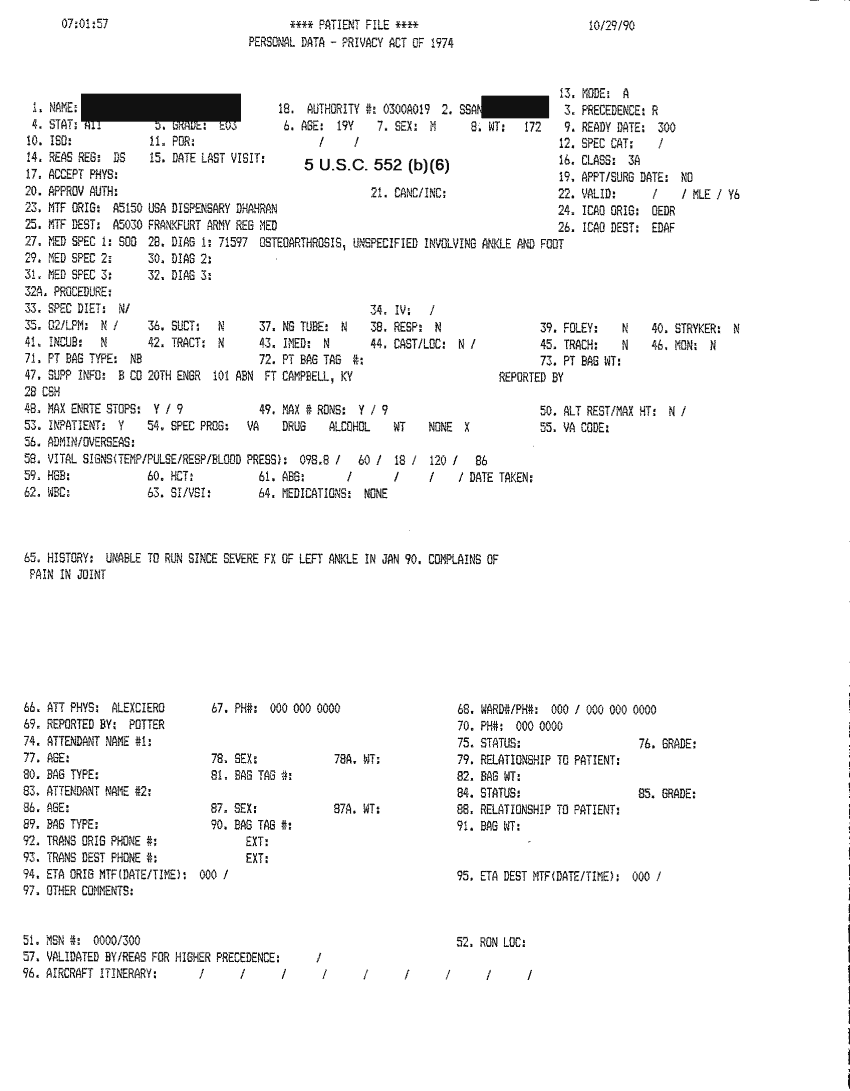 Document 46 f:/Week-32/BX000482/MEDSTAT - SITREPS OCT 90 3 OF 4/patient file 29 oct 90:10019616503417