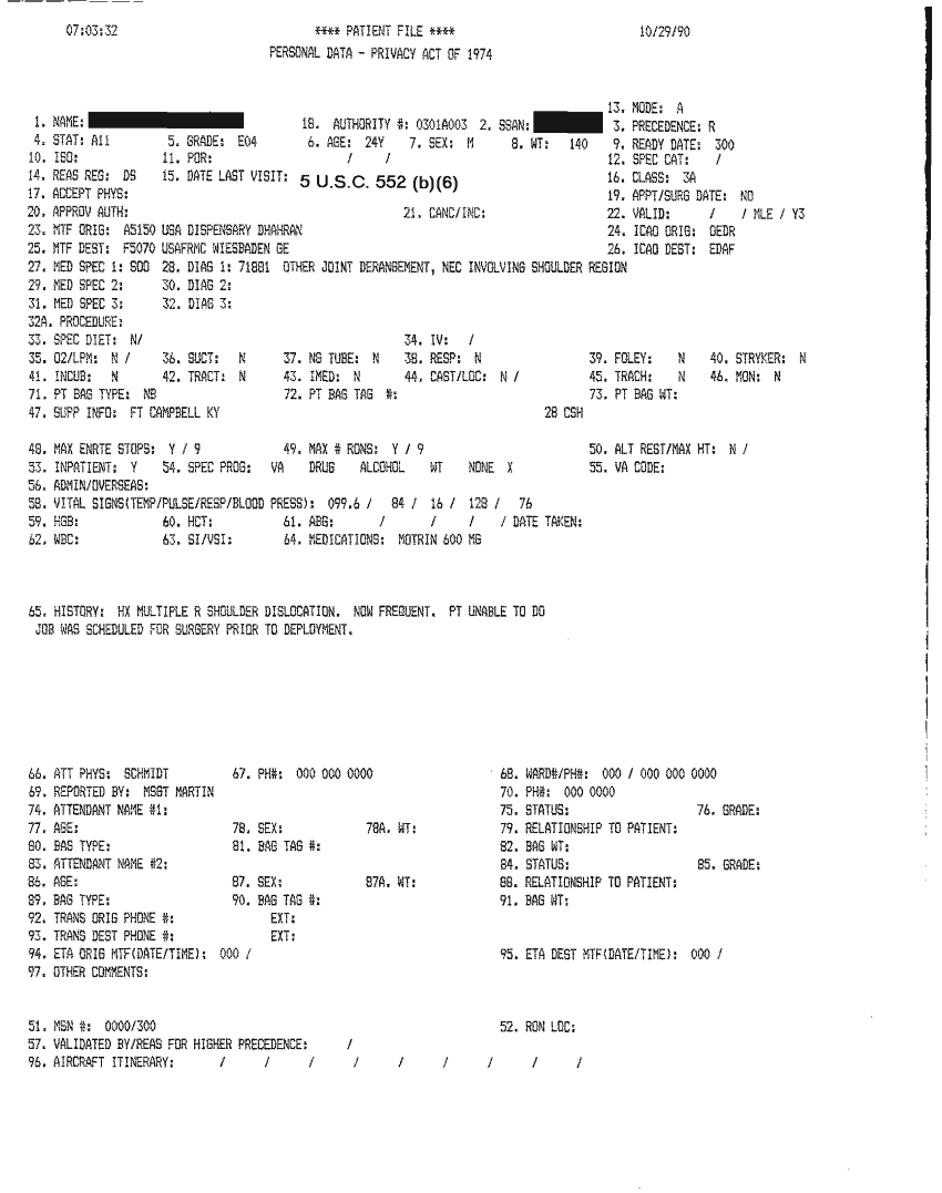 Document 46 f:/Week-32/BX000482/MEDSTAT - SITREPS OCT 90 3 OF 4/patient file 29 oct 90:10019616503417