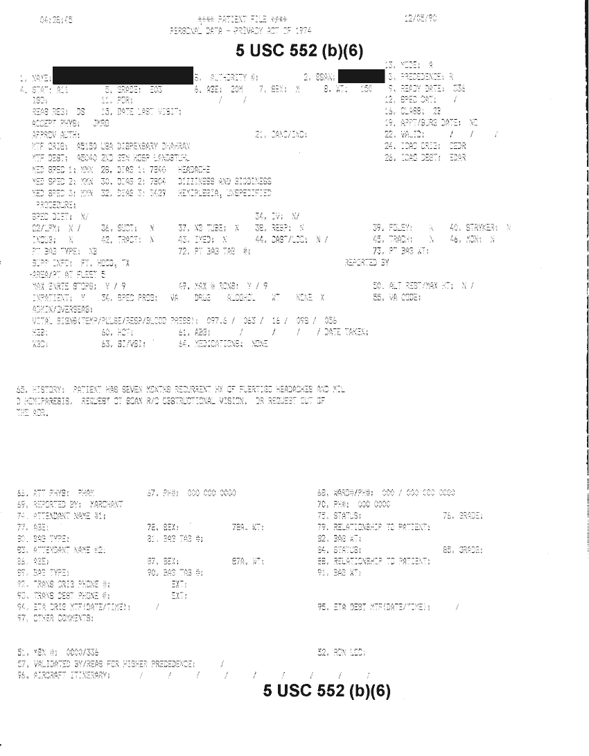 Document 48 f:/Week-32/BX000482/MEDSTAT - SITREPS DEC 90 1 OF 6/patient file personal data:10019616510479