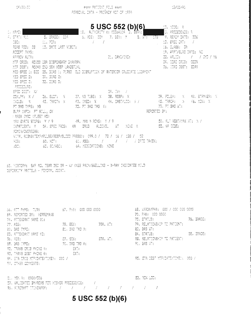 Document 48 f:/Week-32/BX000482/MEDSTAT - SITREPS DEC 90 1 OF 6/patient file personal data:10019616510479