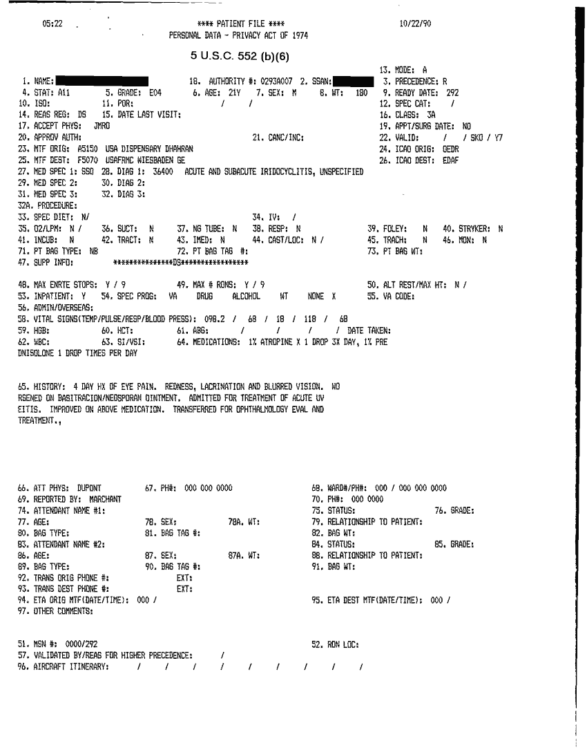 Document 41 f:/Week-32/BX000482/MEDSTAT - SITREPS OCT 90 3 OF 4/patient file:10019616503518